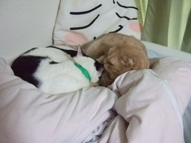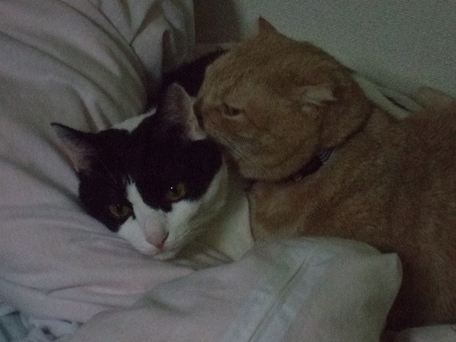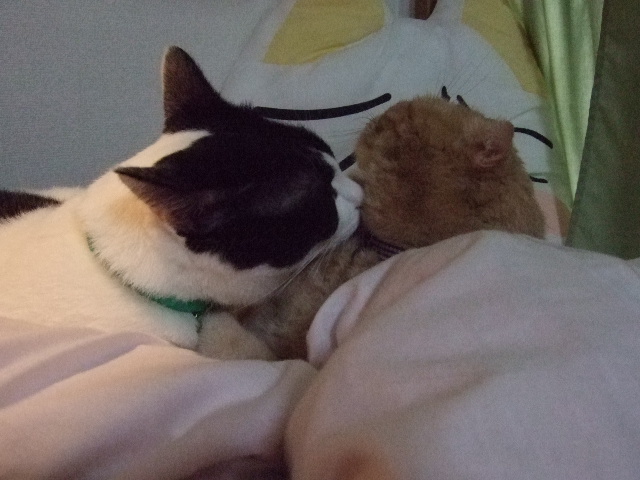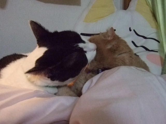 これが、ひすいさんがまりんの毛づくろいをしている証拠です。 チョイぼけですけど。 きお お気に召しましたらよろしくお願いします。