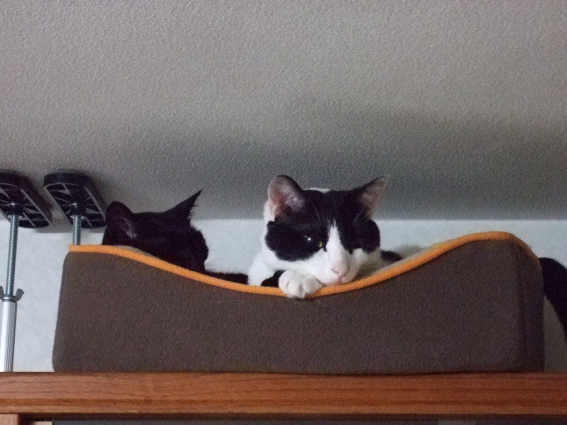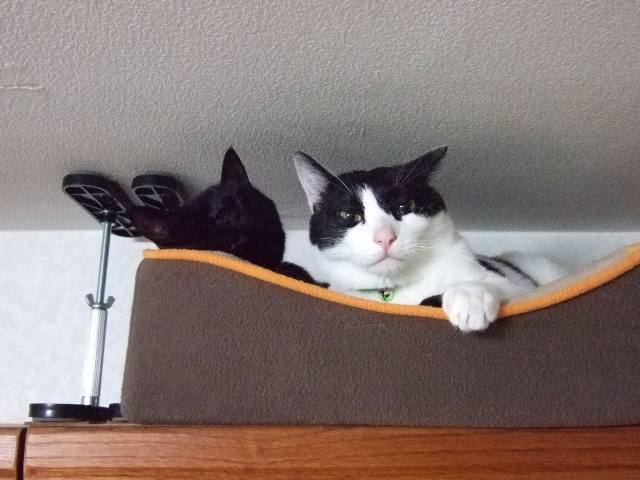 そんなふたりがいるのは本棚の上。イスに乗って両手を伸ばして写真を撮ったのでうまく撮れていなかった。画面を見ながら撮れないのはキツイ。しかし、こんなときイスから落ちて怪我でもしたらアホな奴に認定されてしまう。そんなことは避けたい・・・