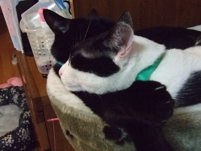 もみっちが、キャリーバッグで奮闘するまりんを見て、ゆずりの部屋に非難していた……。