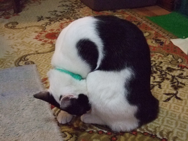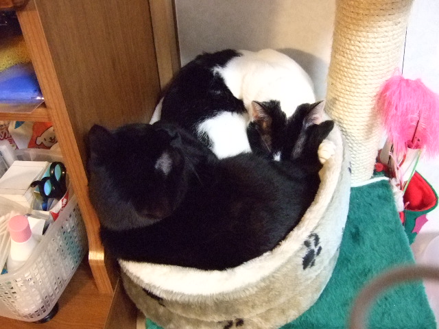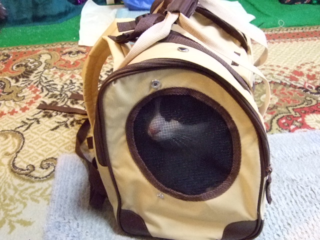 「キャリーバッグは嫌なもの」との認識が3猫にある為、入れるのに大変苦労で、二人がかりですよ。(T△T)