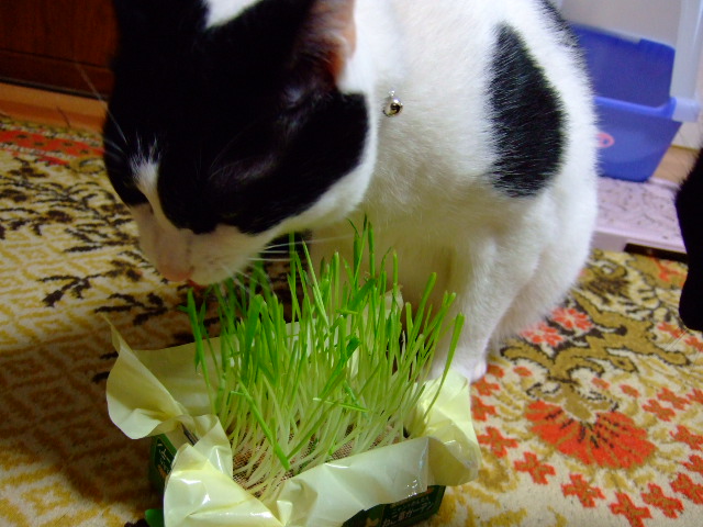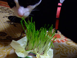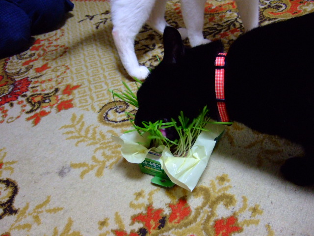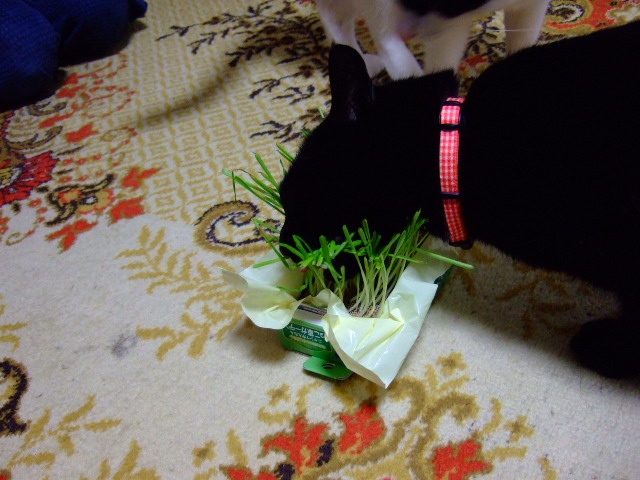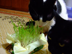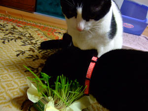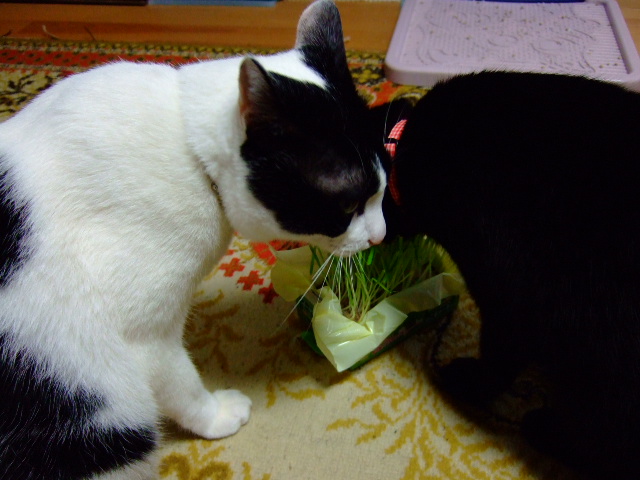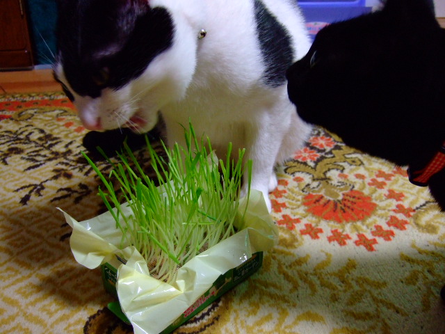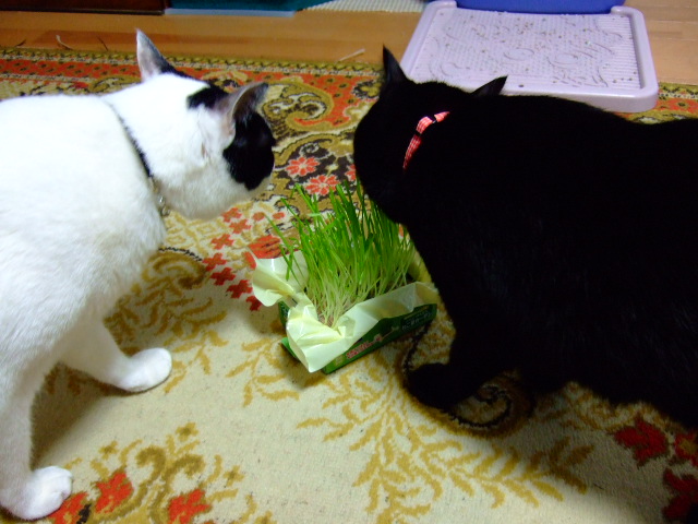 仲良く猫草。