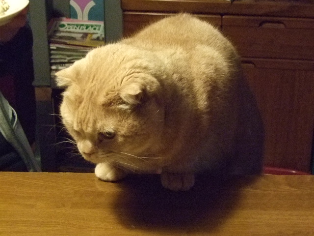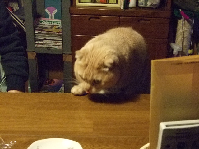 そ、そんな、テーブルに上がる行儀の悪い猫にはあげません~!