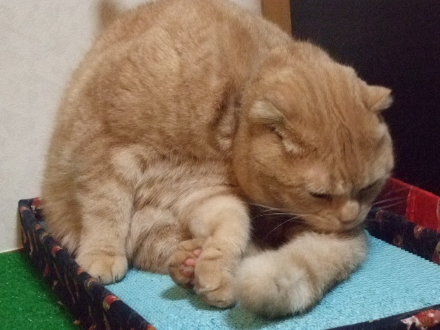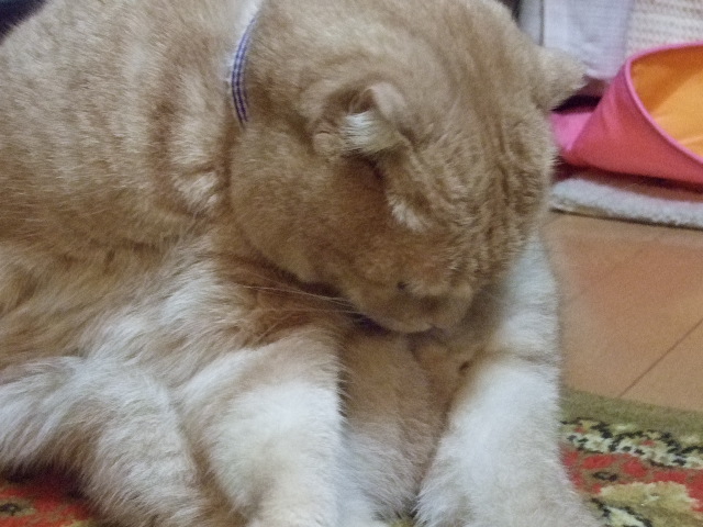 なんちゃって香箱だ。(どちらかの足がでているので)