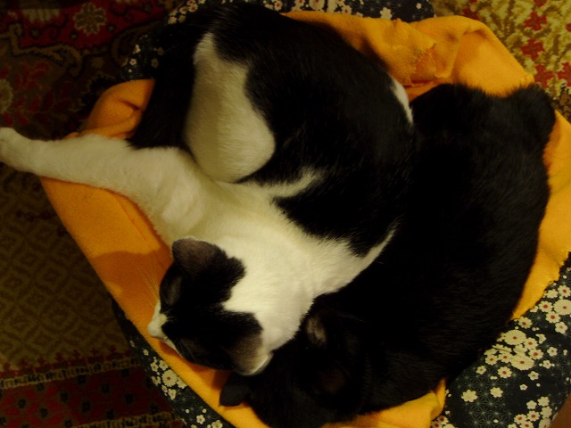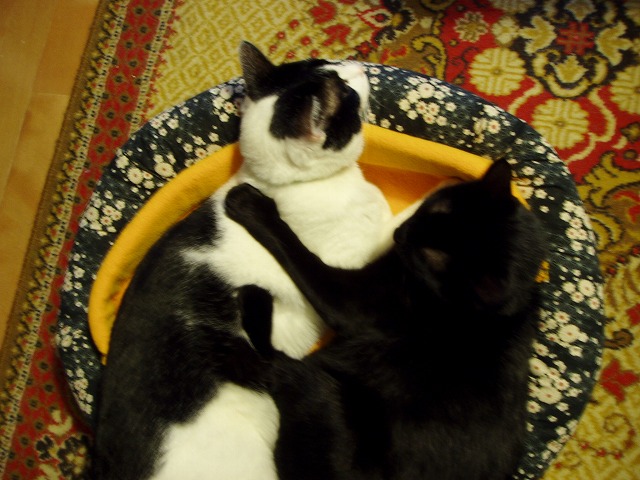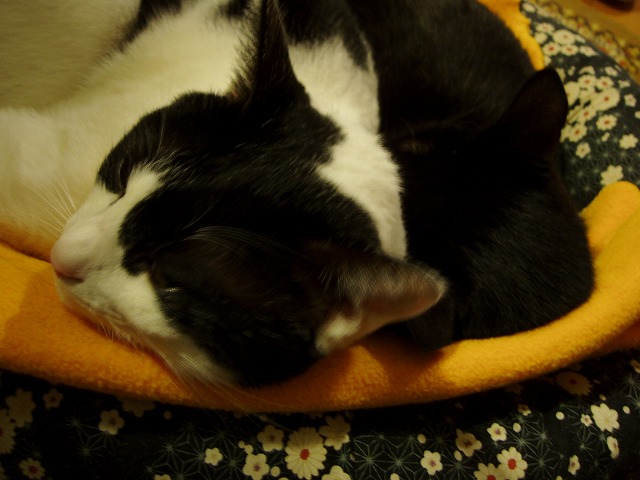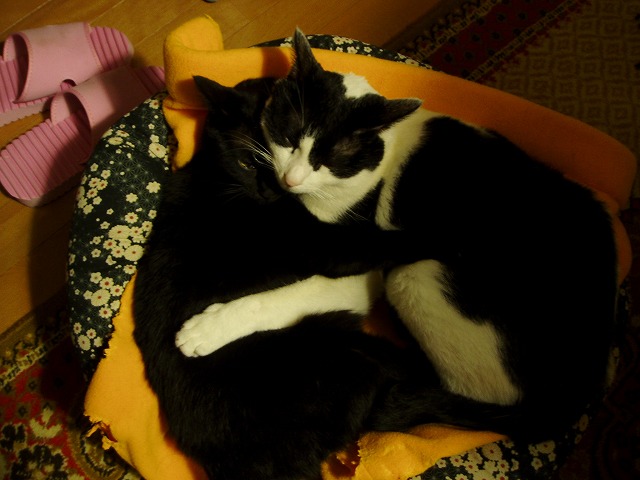 しました、すっかり良くなった、もみっち。 1日で薬が終了したけど、吐くことも無く普通に食べていた。良かった良かった。 でも、こちらも気をつけないと。何を食べるわからないから。こちらも反省です。 ご心配をおかけしました。 一緒に寝てます。が、 ヒーターの前は渡せない……。 きお