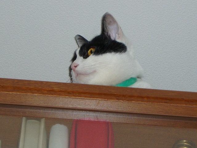 最近、朝、まりんが私の枕の上にやってくる。朝ごはんを食べた後なので、起こす理由がわからない。