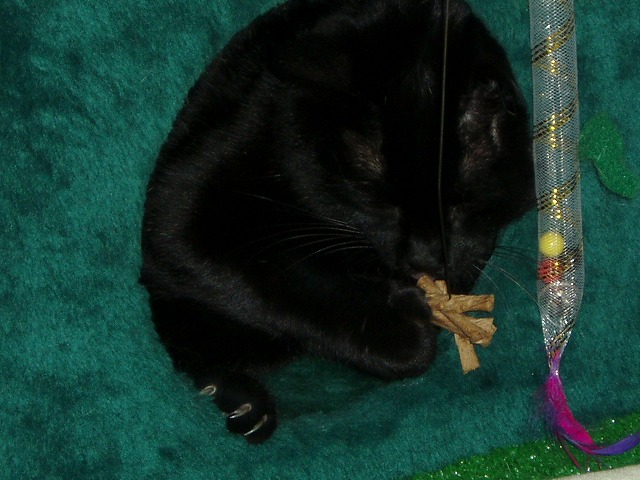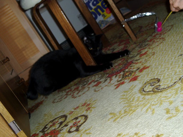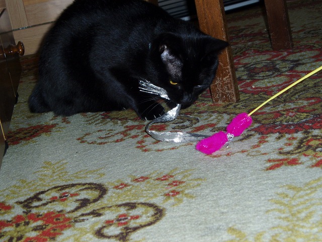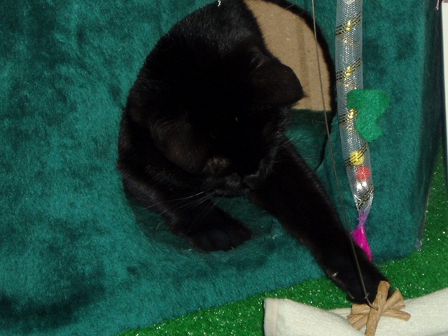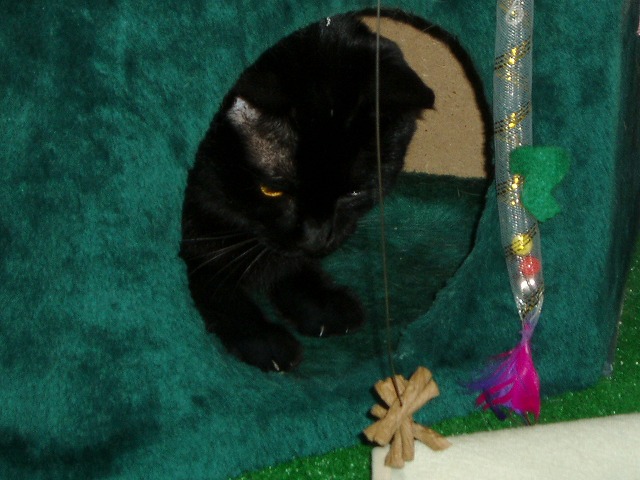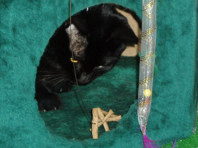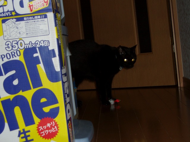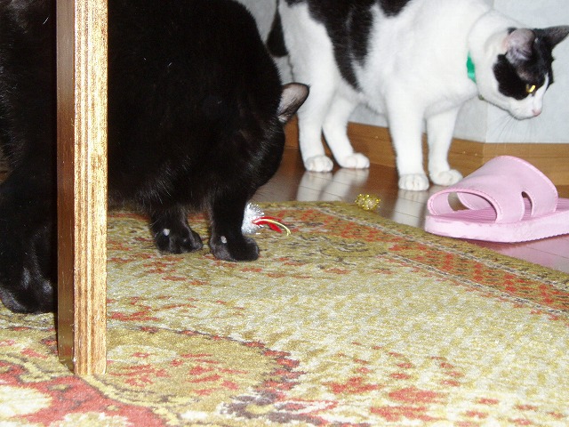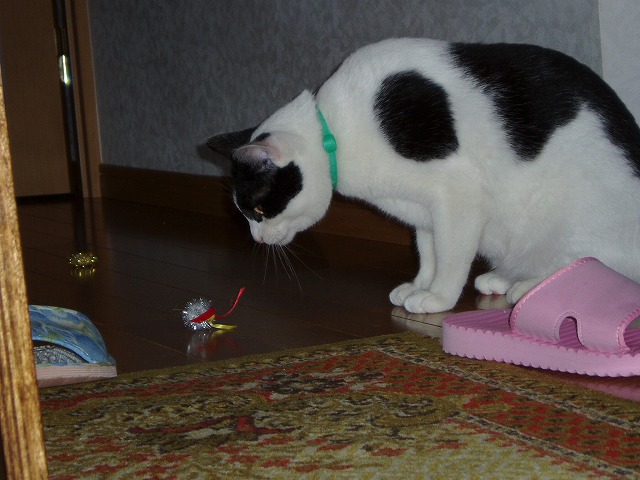 いつもので遊ぶまりんのところに新しいモノが。 「!」 今回新しいモノですよ! 狙うか。 あれ? まりん無関心。 これはもみっちのほうがお気に入り。 きお