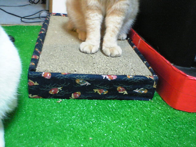 ひすいさんのお気に入りスポットのつめとぎですが、くたびれてきたので中身をかえることにしました。 新しい中身にかえて、金魚柄のカバーも汚れたので洗濯行き。 なんだか、みすぼらしくなってしまった。(ひすいさんのことではない) 中身はカラーのほうがカワイカッタね・・・ カバーが洗濯から戻ってきたので取り付けました。 あれ? カバーがあるだけでおしゃれ感がただよっている。不思議ね。 でも、ひすいさんはいつもと変わらずノホホン生活です。 ゆずり