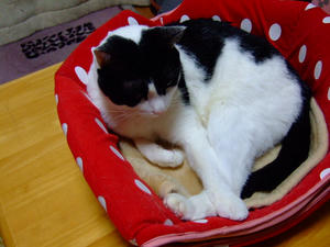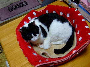 もみちの寝ている場所は、円座です。