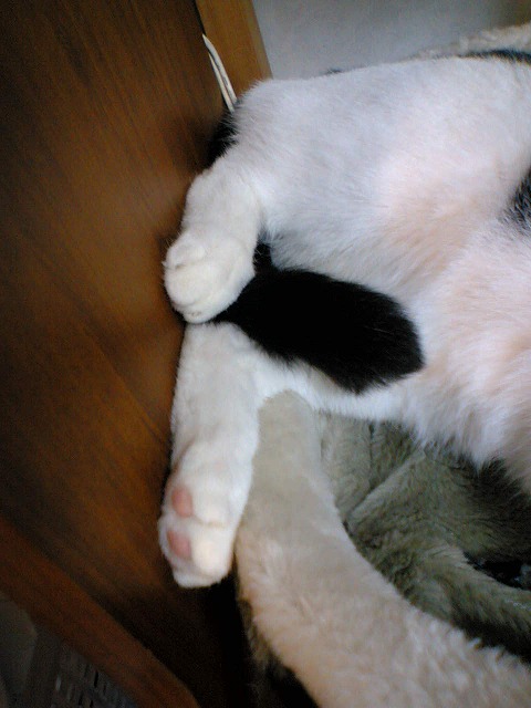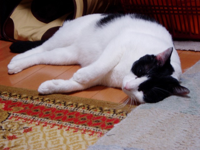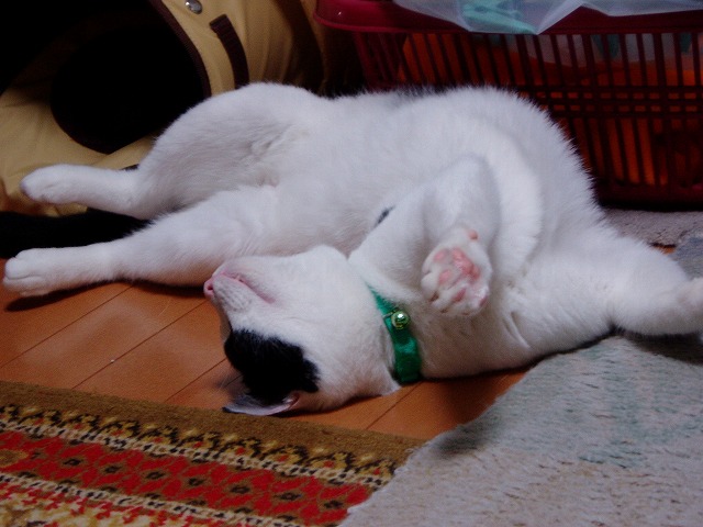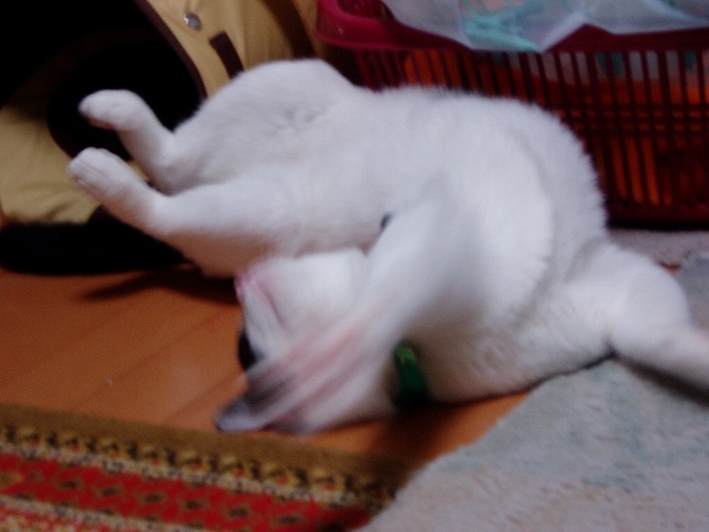 「いっくよ~」 「えーい」 「決まった……」 きめポーズ完成。 まりんは夜になると、お腹を見せることが多い。触ったら猫キックするけど。 きお