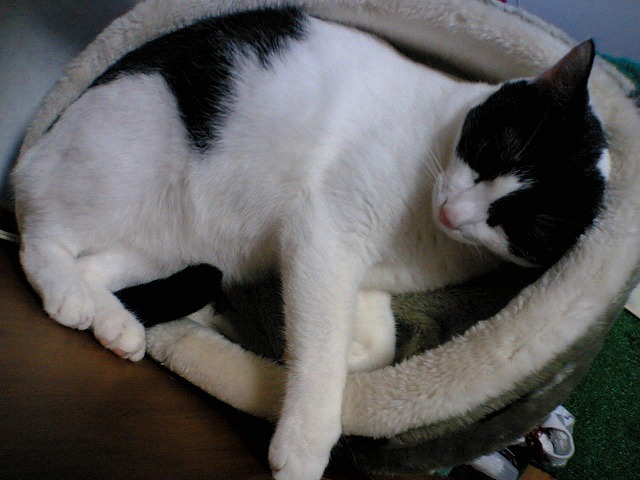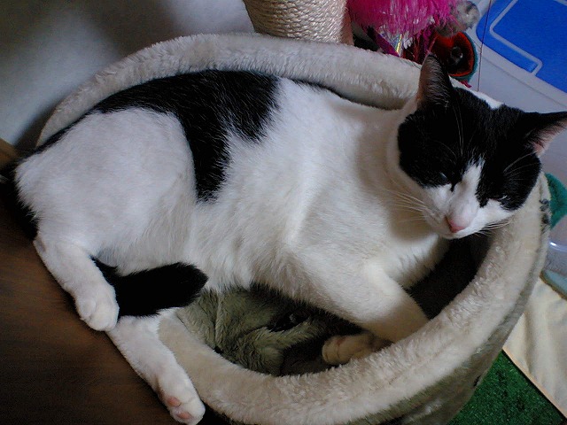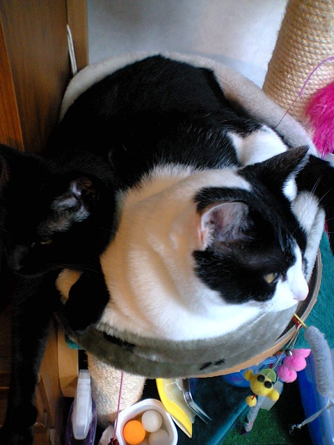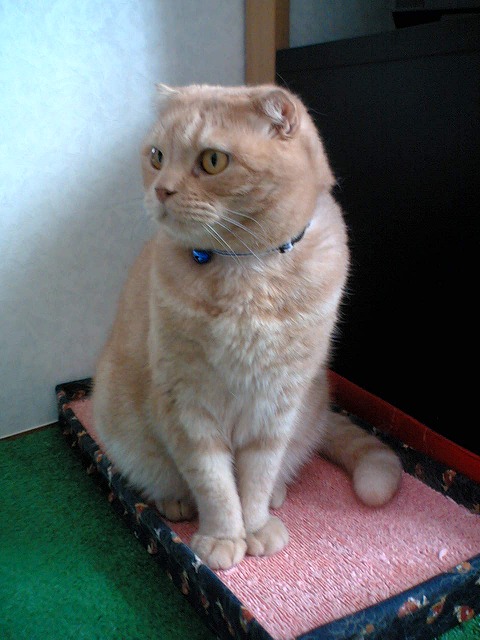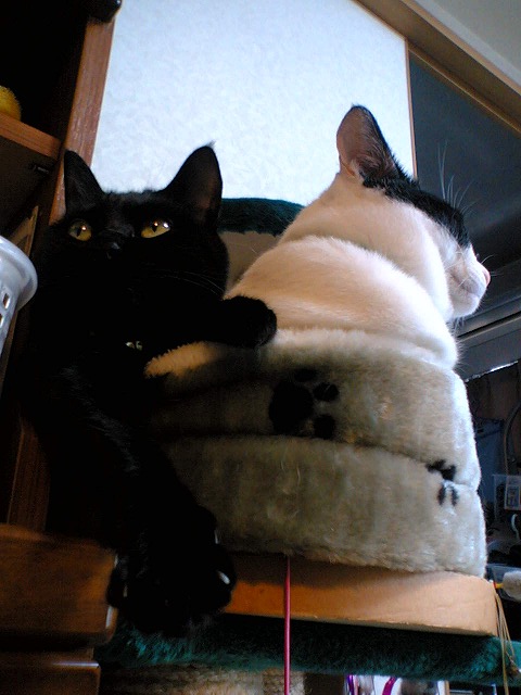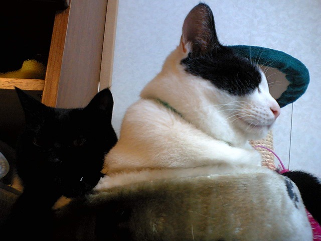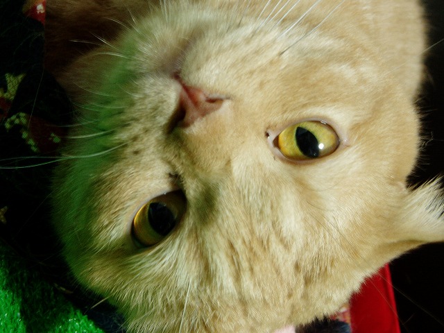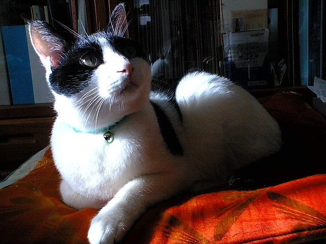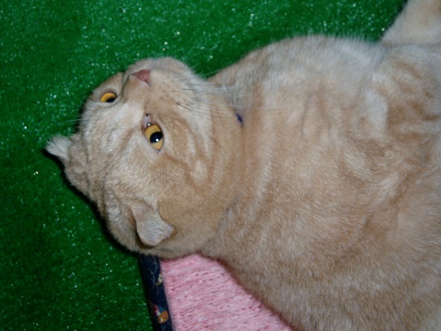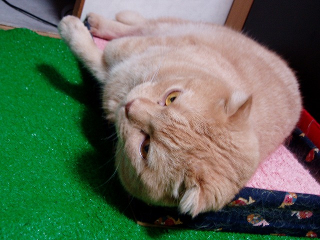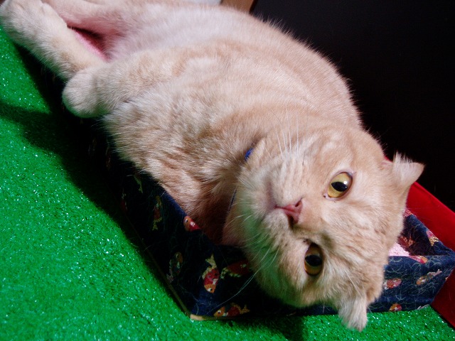 何かしら、ひすいさん。 「オレの出番少なくない?」 どきり。 「やっぱり……」 そんなことはあるかも……。 だって、ひすいさんいつも寝てばかりじゃない。 「寝ているのがカワイイって、いつも言ってるじゃんか~」 そうよ、かわいいけど。でも、動きがないとね、やっぱり。 ひすいさん、じゃらしに反応しないし……。 「それは下僕たちの遊ばし方が下手だからだ!」 うー、それもあるけど、ひすいさん動いても手だけじゃん。 「そんなことはない、失礼な……」 怒らないで~。 今度、ひすいさんのアグレッシブなところをお見せするから。 (果たしてその時が来るかわからないが……) きお