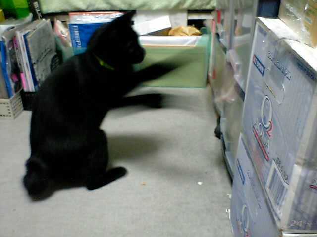 じゃらしを設置してみました。 またもやもみきち登場。”もみきちちぇ~っく!”発動中 「ちぇ~っく! ちぇ~っく!」 チェックなのか? ノリノリでじゃらしと格闘し始めるもみきち。 「おりゃ! おりゃ! おりゃ!」 すごいですね、もみきち。本格的に格闘中・・・ 楽しそうです。 そして素早い動きに写真が上手く撮れません! 新しいデジカメが欲しい・・・ どこかに落ちてるといいな。 3連休は「宝塚、ライブ、ライブ」で終了しました。1日くらいは家でゆっくりしないと疲れが取れませんね。ババアの身体にはツライです。 休日のお台場に黒黒な姿でテクテク歩いている私は、えらく浮いていた・・・ ゆずり