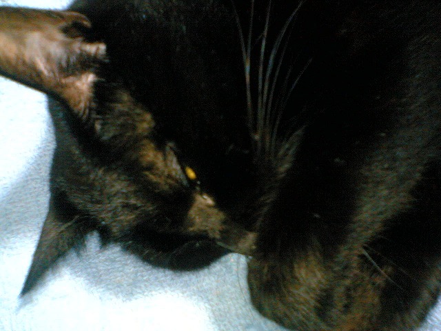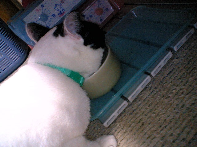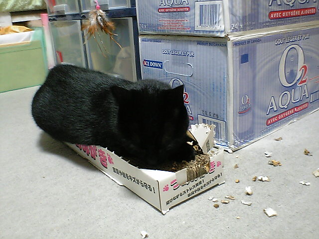 なぜか、私の足のあいだで満足げなもみっち。 もみは、寝ていて寝言を言うことがある。その後、私のところに来て甘えて、体をくっつけて寝る。 私はとてもうれしいのだ。甘えるのはもみだけなので。 私の部屋では、ぼろぼろにせずつめとぎをする、もみ。 この差は何で? お腹すいた……。 このかわいらしい顔は、お腹がすいてるとき発動する。 なぜか鼻赤いしね。 通販で買った水がまろやかになるという器。 いっぱい飲んでるか、というとよくわからない。←だめじゃん。 結構深めなので水はいっぱい入れたほうが飲みやすい。(とくにひすいさんは鼻低いしね) きお
