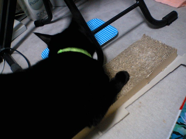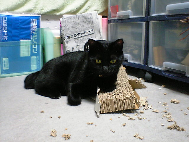 新しいつめとぎをだしました。 さっそく、もみきちチェ~ク! チェックに余念がないもみきち。ガリガリ、ガリガリ。 チェック中? もみきち。これは破壊ではないのか? 私の部屋なのに・・・ さらに、まだまだ続く! ゆずり