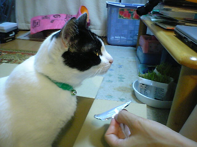 まりん、ご立腹のようです。フタに残っていたヨーグルトではたりなかったのか?