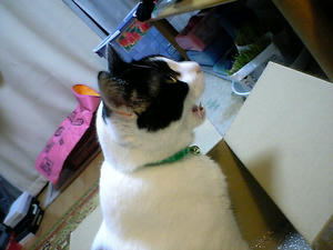 なぜか箱に入ったままエラソウなまりん。ねこと箱はセットですからね。