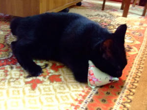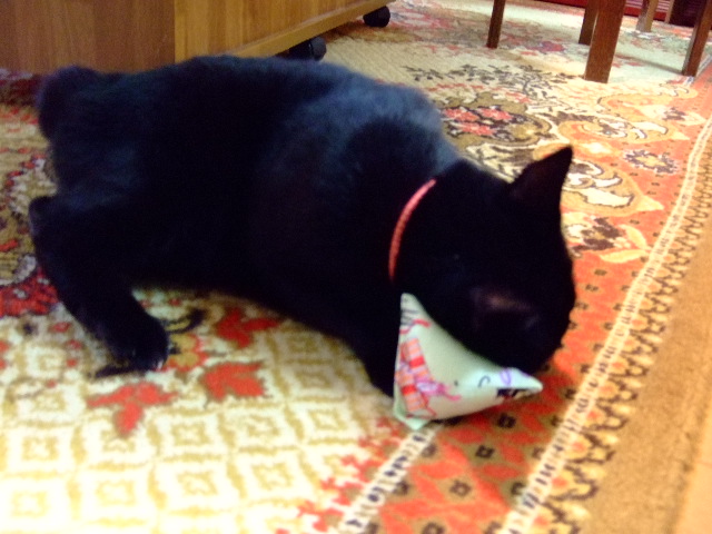 キャットニップ入りおもちゃに反応してます。