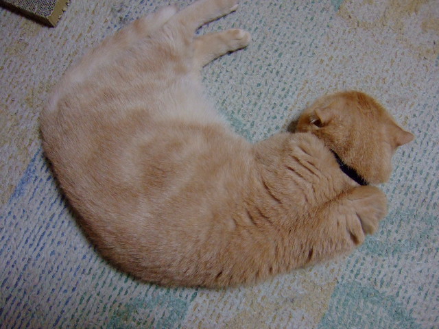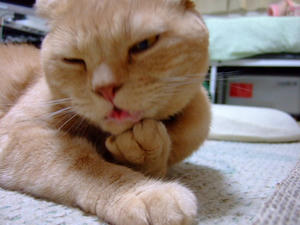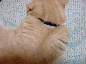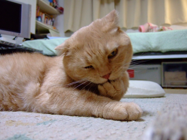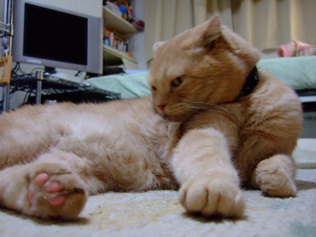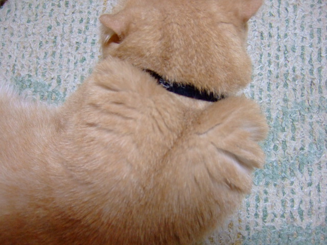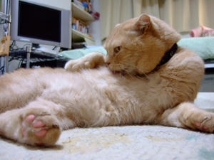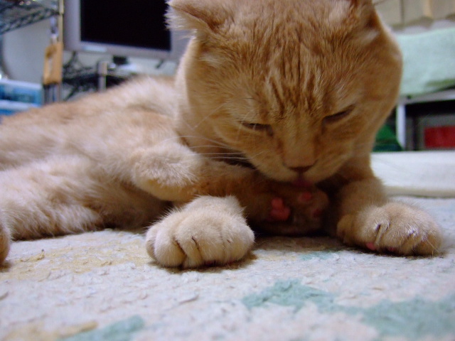手入れしているのは後足。相変わらずヘンなかっこだなあ。
