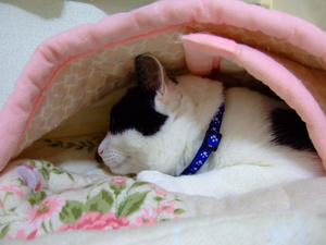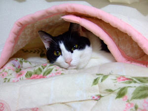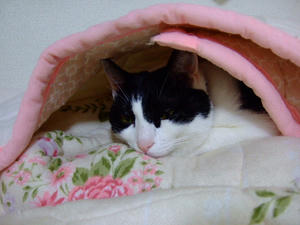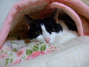 布団にもぐっているのは珍しい、まりん。