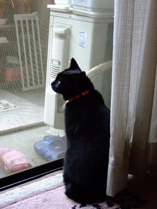 もみっちの朝食後は、窓から外を見ることが日課。