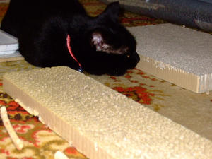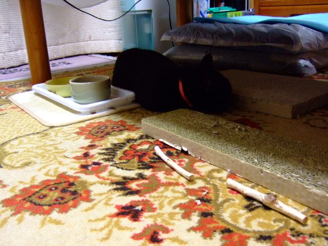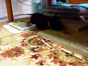 爪とぎにはさまれて。