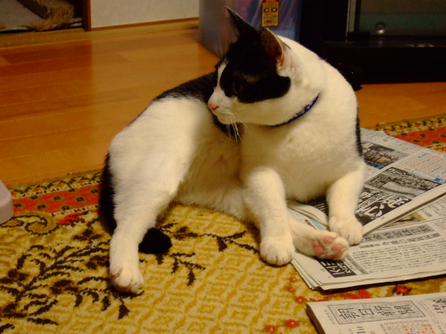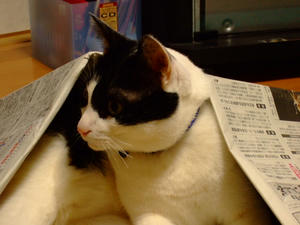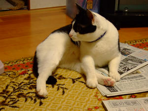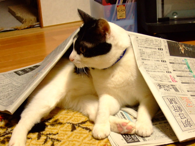 まりんの上の新聞。