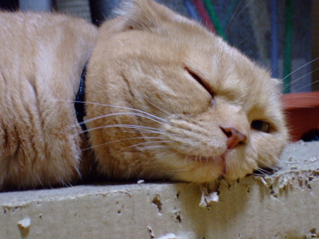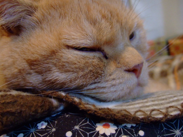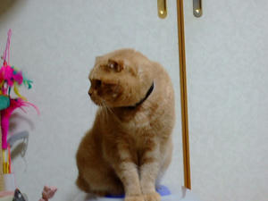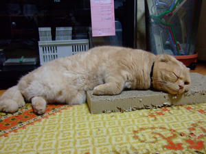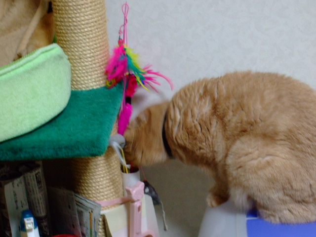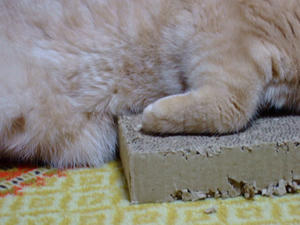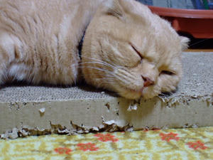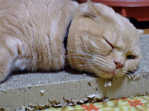 とどらしい、ひすいさん。相変わらず爪とぎを愛用中。
